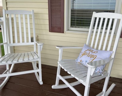 - Perfect for creating your front porch, patio, poolside, or backyard oasis, this set includes two mahogany rocking chairs, ideal for sharing peaceful moments outdoors.
