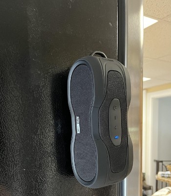 Thanks to its built-in magnet, the BoomJacket can securely attach to any metal