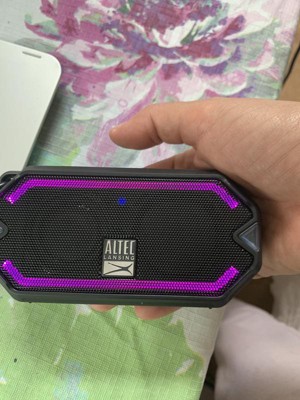 [This review was collected as part of a promotion.] The Altec Lansing Bluetooth speaker has a lot of boom to be so small! It’s the perfect size to take anywhere you go!! My son really enjoys putting it on the bathroom counter while he takes his shower so he can listen to his music. It’s so easy and quick to charge up and the charge last for a long time. I really like that it’s water proof and small enough to carry in my pocket book. The lights on it are really cool looking and work great. It’s Bluetooth so we can use our phones to play music. Seems to be very well made and sounds great. I love it!!