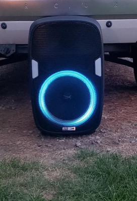 [This review was collected as part of a promotion.] I am so happy to have this speaker. It’s big and definitely puts out a lot of sound. The sound quality is great too. There are wheels and they make it so easy to transport. The microphone is a fun feature and my kiddos think they are the star of the show with it! The speaker has lights too! Really everything you need to bring the party anywhere. Connecting through Bluetooth was simple as well. Love this speaker.