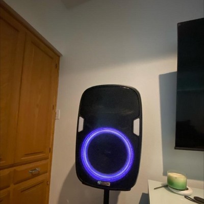 [This review was collected as part of a promotion.] We had lots of fun with this portable speaker. First off the sound is amazing and loud. There is a bass and treble control. You can listen to radio or connect with Bluetooth to listen to music from your phone or Alexa. Connection is pretty easy and fast there also is a little jack to connect a device. It also came with a microphone that is fun for karaoke and goofing around. The light ring has different modes and colors. It has a handle for rolling around and it only weighs about 20 lbs. Would be great for an outdoor party. I'm going to try it out on the boat for music and lights it has a charging port for USB device. So far I have not had to charge it it seems to have a good battery to it. Great for camping or boat charge your devices and listen to music.