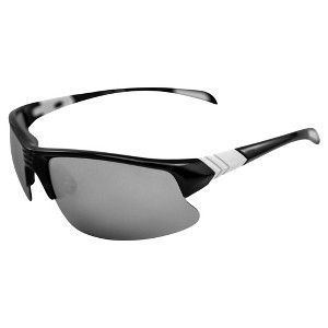 Product Name: AlterImage Arrow Wraparound Sports Retro Sunglasses for Men or Women Black Semi-Rimless Frame w/Coinjected White Rubber Tips & Flash Mirror Lenses