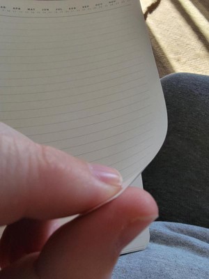 Loved the notebook. The cover and back are sturdy so I have no problem with it when carrying it in my backpack. There is a little folder on the inside to hold any loose paper which is convenient. Each page has dates on top to keep track if needed.