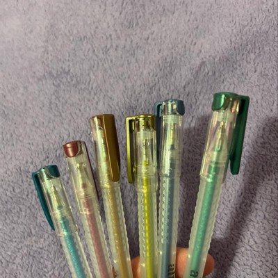 I will definitely say that I am a "pen snob". I love great pens of all kinds. I also pick up pens that I haven't tried... How else will you find the diamonds in the rough? These are definitely not diamonds. The colors are odd, they take a while to get "started" as a gel pen, and they have a horrible pen case which makes it hurt to use. If you are looking for some cheap metallic gel pens, try these. If you want GOOD metallic gel pens, skip these and try Gelly Roll or Pilot G-2 metallic!