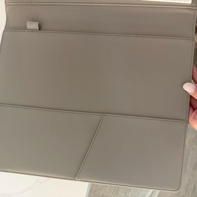 [This review was collected as part of a promotion.] This is an excellent organizational piece. The feel of the cover is really soft and smooth, but not at all slippery which makes it really convenient to carry around. The color is almost a greige making it complimentary to most outfits! There is a space to hold papers and it’s secure. The pen holder is convenient as well as the little pocket inside which I use for receipts. Great item! I received an incentive to write this review.