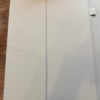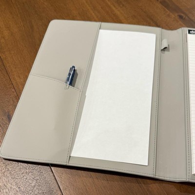[This review was collected as part of a promotion.] I am loving this padfolio. It feels heavy duty and thick and is very satisfying to write in. The size of the paper that’s included is large and I was able to write a long letter on it because of the size. I like the pockets for storing extra papers or documents and the pen storage. The only thing I don’t like is that the cover material is easily stained. The light grey color probably doesn’t help to hide stains but I’ve only used this a couple of times and the cover looks like it has an ink stain that I can’t remove. I received an incentive to write this review.