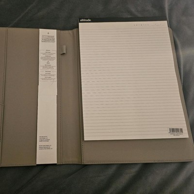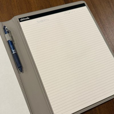 [This review was collected as part of a promotion.] I got the 10”x12.5 modern padfolio in the grey vegan leather cover by Altitude Padfolio. This is such a nice quality padfolio with a sleek look to it. I like how the pad is removable, and it has the days of the week listed for you to circle, and then put the date next to it. The pad is college ruled paper so you can keep your notes nice and organized. the other side of the book has a pocket to allow you to put any papers in, and a holder for your pen. I do wish that this had a zipper to close it up, but overall, I am very happy with it. I received an incentive to write this review.