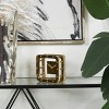 Display it on a shelf to add some style to your home decor. Designed with felt or rubber stoppers at the base that prevent scratching furniture and table tops, as well as sliding around. Requires 1 AA battery, not included. This item ships in 1 carton. Clock has a floating gold square with gold hands, and no number markers or tags. The clock mechanism runs silent. Aluminum clock makes a great gift for any occasion. Can be hung horizontally using the D-rings on the back; nails and screws not included. Suitable for indoor use only. This item ships fully assembled in one piece. Made in India. This is a single gold colored clock. Contemporary style.