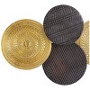 - Round disc wall decor showcases colors of black and gold in a polished shine finish