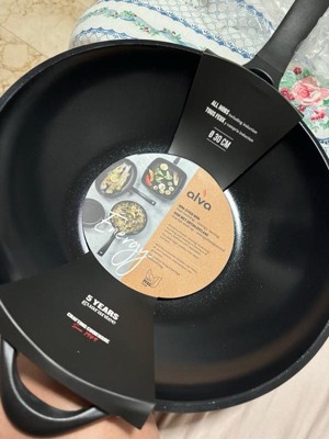 [This review was collected as part of a promotion.] I love my Alva non-stick Wok pan. It's a heavy-duty pan that cooks evenly and cleans up easily. The handle is made with a plastic heat-resistant material that does not get hot, so you won't burn your hand while you're cooking. It hangs nicely on the wall beside my stove.