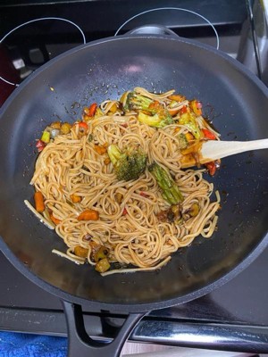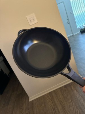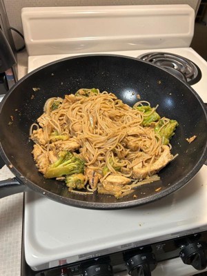 [This review was collected as part of a promotion.] Can’t stop cooking with this wok!! It effectively distributes heat to cook my food evenly, is so easy to clean, and is a perfect size to cook enough for my whole family. It also has a great handle making transporting the pan an ease.
