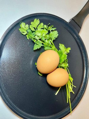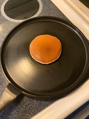 [This review was collected as part of a promotion.] This pan is perfect for pancakes and omelets. It's light weight, and the sides are low to make it easy to flip the pancakes. It's large enough for a large pancake, and the even heat cooks the pancake quickly. I used pam to avoid any sticking, and my pancakes flipped easily. It's hand wash only but comes clean easy with a sponge. My pancakes come out thick and fluffy every time I make them on this pan. My omelet also turned out great on this pan and was easy to flip over. After three times cooking with this pan, it does have some dark marks on the bottom from my stove, but doesn't affect the way it works. This is now my go-to pan for pancakes, and I would recommend it.