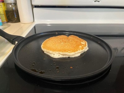 [This review was collected as part of a promotion.] It took me a minute to actually review this but finally I could! Even though this was made for “pancakes” i use it to sauté my peppers & onions which actually cooked fast & pretty good! The heat produced pretty fast to the pan and cleaning it was a piece of cake due to it being non stick! Overall i loved it! I’ll be using this pan for sure when I’m cooking again!