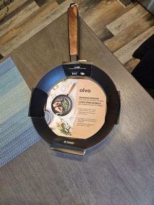 Alva Forest Carbon Steel Frying Pan 9.5" - Acacia Wood Handle, Naturally Nonstick & Toxin-Free Cookware