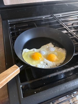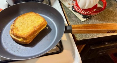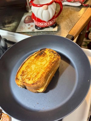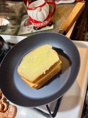 [This review was collected as part of a promotion.] This skillet is a bit of a mixed bag in the most charming way. It’s wonderfully lightweight, surprisingly non-stick, and the wood handle feels so comfortable in the hand — like it was actually designed by someone who cooks. But here’s the catch: this pan is temperamental. You basically have to treat it like a delicate little diva on the stove. If the heat isn’t set to very low, it will scorch your food in seconds. Even on just medium low heat, my grilled cheese got a little more toasty than I prefer. The flip side to that, though, is the heat distribution was even, so at least it burned evenly. Once you adjust to its overly sensitive personality, it can turn out some great results — but there’s definitely a learning curve. Perfect if you want something light and stylish… just be ready to cook low and slow.