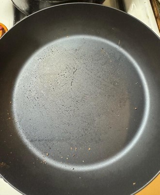 [This review was collected as part of a promotion.] This is a non stick pan, worked really well while cooking. The package says hand wash, and I still ended up with water rust spots. Make sure you dry all the way before storing it!
