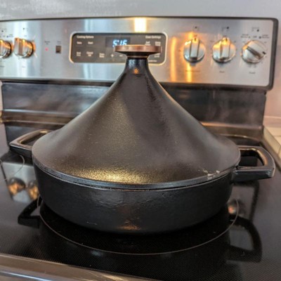 [This review was collected as part of a promotion.] This tagine cast iron pot feels very high quality. It has a nice weight to it - heavy, but not so heavy it's difficult to move around. The cast iron itself is smooth with no cracks or pits. The design is sleek and looks great when on the stove. The pan heats up quickly and evenly. It also retains the heat incredibly well. Since it is cast iron, all 3 handles (the two on the sides, and one on top of the cover) get hot - so either use mitts or get covers for them. Some steam comes out the side while cooking, but the majority stays inside - helping ensure juicy and flavorful meals. Surface is nonstick and easy to clean. All meals I've cooked so far come out great with this! I also like that it's a little versatile - you can use it as a tagine or just a regular cast iron (uncovered).