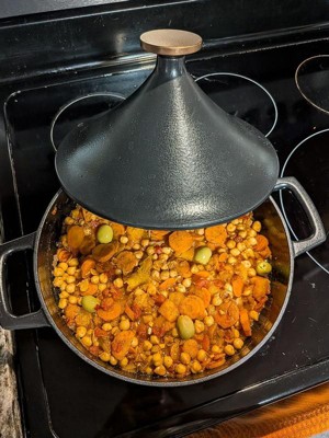 [This review was collected as part of a promotion.] Man, when I pulled the Alva Nori Moroccan Tagine outta the box, I was like, dang, this thing’s legit. Black cast iron, that bronze knob poppin’, it’s straight up Moroccan souk energy on my counter. First dish? Chicken tagine with olives and preserved lemons. The cast iron heats so nice and even, and that pointy lid keeps all the steam locked in. Chicken came out crazy tender, spices slappin’. My fam crushed it, and I was flexin’ like a pro chef platin’ it up. Then I went for chicken tikka masala, and yo, it was fire. Sauce was rich, chicken juicy as hell, and I barely had to do anything. We were all too busy scarfing it down to talk. Cleanup’s a breeze with that enamel coat, and it’s good in the oven up to 392°F. I’ve thrown in beef stew, even a ramen style hot pot, it handles everything. Heads up, though: it’s cast iron, so if you got a glass cooktop, watch out. This beast is heavy, and I use a silicone mat for the lid. Handles don’t get too hot, which is clutch. It’s got a 25 year warranty, so it’s basically indestructible. The recipe book gave me some ideas, but I’m havin’ fun switchin’ it up, like that tikka masala that’s now my jam. This tagine makes cookin’ feel like a whole vibe, looks dope, works like a champ.