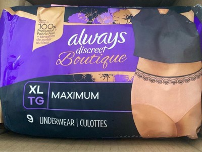 A: Always Discreet Boutique Underwear hold up to 1.75 cups or 425 ml