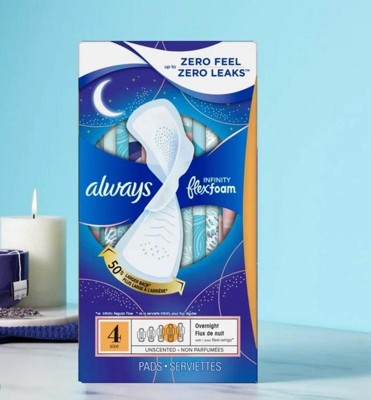 Always Infinity Size 4 Overnight Pads offer excellent overnight protection with FlexFoam technology that’s thin yet super absorbent. They stay comfortable, move with your body, and prevent leaks even during heavy flow. Ideal for all-night confidence and freshness. Also it's a perfect fit and value for money.