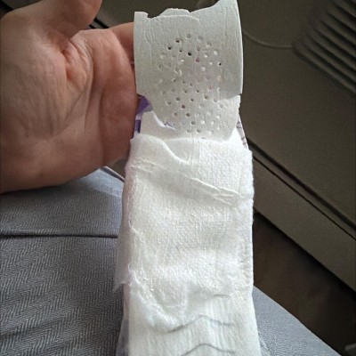 These feel so comfortable on due to the “foam” material they’re made of. Doesn’t have the “diaper” feel as others do. The scent is a bit overpowering for me, as I have a very sensitive sense of smell. I would prefer a lighter scent, but this is probably not an issue for the average woman. The size is interesting… I bought the size recommended for me and it is longer than I’d like for daily wear, but great for night time use.
