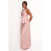 Step into effortless elegance with the Alysa Skirt Set in Blush. Featuring a sleeveless cowl neck top with an adjustable tie-back and an elasticized fit, it pairs perfectly with the maxi-length skirt adorned with delicate floral detailing. Complete with an invisible side zip for a seamless look.