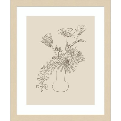 This artwork depicts a bouquet of flowers arranged in a vase, showcasing intricate line sketches and botanical details. The floral design captures the essence of a still life, showcasing the beauty of nature. This Amanti Art framed art print was created by Kate Aurelia Holloway and printed by Amanti Art in Madison WI. The print is giclee printed using fade-resistant inks for picture-perfect detail and incredible depth of color and finished with a 100% real wood frame. Individually made using traditional custom framing techniques, it has the quality you would expect from your local frame shop. Because of our attention to detail and focus on artistry, architects, interior designers, and homeowners alike choose this framed art print to create beautiful living spaces.