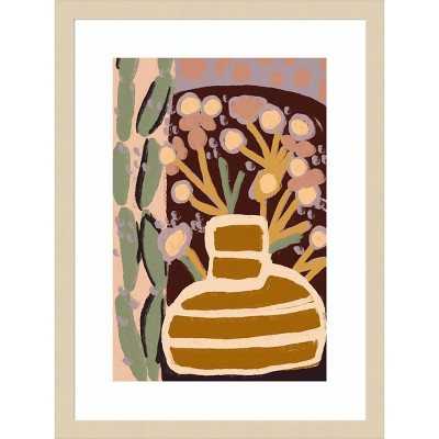 A simple and minimalistic still life artwork featuring a vase filled with black and white flowers and leaves. The graphic design captures the essence of botanical beauty, showcasing the abstract simplicity of nature's elements in a captivating and minimalist way. This Amanti Art framed art print was created by Treechild and printed by Amanti Art in Madison WI. The print is giclee printed using fade-resistant inks for picture-perfect detail and incredible depth of color and finished with a 100% real wood frame. Individually made using traditional custom framing techniques, it has the quality you would expect from your local frame shop. Because of our attention to detail and focus on artistry, architects, interior designers, and homeowners alike choose this framed art print to create beautiful living spaces.