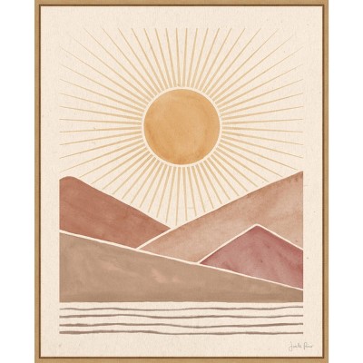 FRAME DETAILS: The canvas is framed in the Sylvie Maple frame, which is a modern, float frame with natural maple woodgrain coloring and dramatic depth. The frame measures 1 in. wide and stands 2 in. off the wall. The canvas appears as if it is floating in the frame because it has a narrow gap between the edge of the canvas and the frame. The overall size of this framed canvas print measures 22 in. W x 22 in. H.