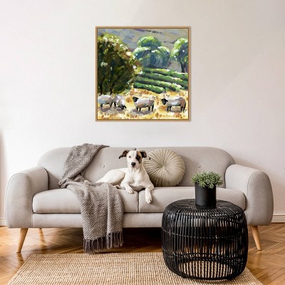 Amanti Art 22"x22" Sheep in Summer I by Melissa Wang Framed Canvas Wall Art Print