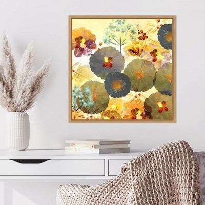 This artwork captures the delicate silhouettes of tree branches with autumn leaves against a soft, golden sky. The interplay of light and shadows creates a calm and serene atmosphere. The intricate network of branches and the warm hues of the leaves add depth and texture to the composition. This canvas art print was created by Judy Stalus and printed in Waunakee, WI. The canvas is stretched by hand and finished with a float frame. Individually made using traditional custom framing techniques, it has the quality you would expect from your local frame shop.
