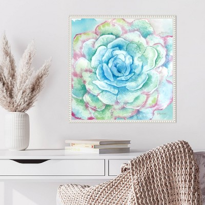 This artwork features a vibrant, watercolor depiction of various flowers in full bloom. The background consists of soft, pastel colors that highlight the delicate beauty of nature. Butterflies add a whimsical touch, enhancing the overall serenity of the garden scene. This canvas art print was created by Cynthia Coulter and printed in Waunakee, WI. The canvas is stretched by hand and finished with a float frame. Individually made using traditional custom framing techniques, it has the quality you would expect from your local frame shop.