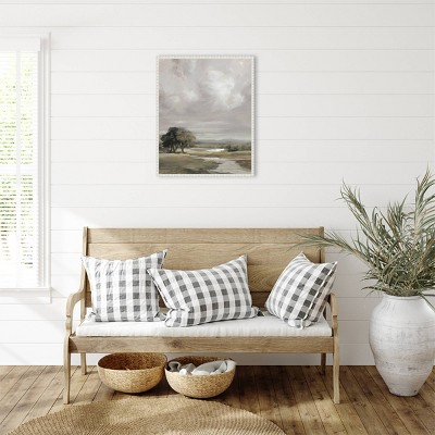 FRAME DETAILS: The canvas is framed in the Sylvie Beaded White frame, which is a vintage float frame featuring a traditionally beaded ornate design with white coloring, a subtle woodgrain pattern and dramatic depth. The frame measures 1 in. wide and stands 2 in. off the wall. The canvas appears as if it is floating in the frame because it has a narrow gap between the edge of the canvas and the frame. The overall size of this framed canvas print measures 23 in. W x 28 in. H.