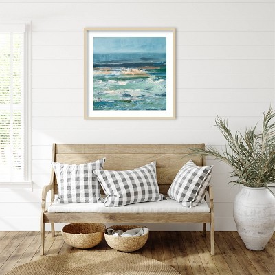 This artwork features a minimalist illustration of a white flower with an orange center and teal leaves. The flower is placed in a black vase with an elegant white and light yellow design. The background is a soft light blue, enhancing the contrast and simplicity of the piece. This canvas art print was created by Casa Cartissi and printed in Waunakee, WI. The canvas is stretched by hand and finished with a float frame. Individually made using traditional custom framing techniques, it has the quality you would expect from your local frame shop.