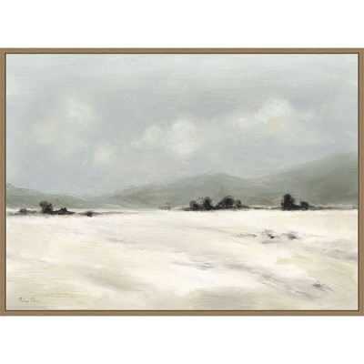 The artwork displays a delicate watercolor painting of a flowering branch with white petals and green leaves. A cicada is perched on the branch, adding a touch of life to the serene botanical scene. The background is a clean, minimalistic white, which emphasizes the intricate details of the flowers and foliage. This canvas art print was created by Ju Lian and printed in Waunakee, WI. The canvas is stretched by hand and finished with a float frame. Individually made using traditional custom framing techniques, it has the quality you would expect from your local frame shop.