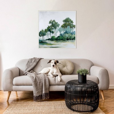 FRAME DETAILS: The canvas is framed in the Sylvie Beaded White frame, which is a vintage float frame featuring a traditionally beaded ornate design with white coloring, a subtle woodgrain pattern and dramatic depth. The frame measures 1 in. wide and stands 2 in. off the wall. The canvas appears as if it is floating in the frame because it has a narrow gap between the edge of the canvas and the frame.