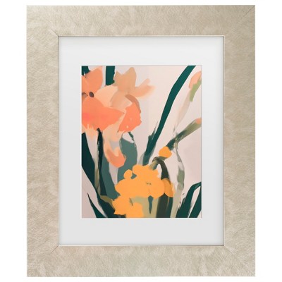 The image depicts a modern, minimalist watercolor portrait of a woman. She is wearing a large, beige hat that partially obscures her face. The artwork features soft pastel colors, with the subject's long, wavy brown hair and delicate features providing a sense of elegance and beauty. This framed art print was created by Melloi Art Prints and printed by Amanti Art in Madison WI. The print is giclee printed using fade-resistant inks for picture-perfect detail and incredible depth of color and finished with a 100% real wood frame. Individually made using traditional custom framing techniques, it has the quality you would expect from your local frame shop.