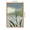This artwork features an abstract representation of a landscape with muted green and grey tones. The soft, sweeping hues create a serene and calming atmosphere, resembling hills or grasslands under a cloudy sky. The composition is minimalist, utilizing simple lines and shapes to evoke the essence of nature in a modern and stylish manner. The sparse use of dark strokes suggests the presence of tall grass or reeds, contributing to the simplistic yet evocative scene. This canvas art print was created by Nilesh Kulkarni and printed in Waunakee, WI. It is stretched across a solid surface to resist sagging. We use only premium, high-tension canvas. Our exclusive stretching techniques hide corner folds and provide a taut canvas surface. The artwork is authentically licensed. The canvas appears as if it is floating in the frame because it has a narrow gap between the edge of the canvas and the frame. Our canvas items are individually made using traditional custom framing techniques, it has the quality you would expect from your local frame shop.
