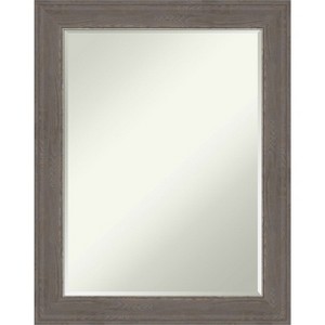 Give your bathroom the finishing touch with this Petite Bevel bathroom mirror. The Alta Brown Grey frame is a grey-brown washed frame with the look of woodgrain that scoops into a brushed, shiny metallic silver inner edge. The frame is 2.5 in. wide and stands 1.25 in. off the wall. It's Individually made using traditional custom framing techniques, it has the quality you expect from your local frame shop. It holds its value with premium finishing that can be appreciated up close. Because of our attention to detail and focus on artistry, architects, interior designers, and homeowners alike choose this mirror to create beautiful living spaces.