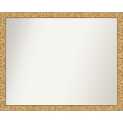 Give your bathroom the finishing touch with this 100% real wood Non-Beveled bathroom mirror. The Bethany Gold frame is an ornate, satin gold frame with a wood grain patterned outer edge and darker gold detailing.. The frame is 1.25 in. wide and stands 1 in. off the wall. It's Individually made using traditional custom framing techniques, it has the quality you expect from your local frame shop. It holds its value with premium finishing that can be appreciated up close. Because of our attention to detail and focus on artistry, architects, interior designers, and homeowners alike choose this mirror to create beautiful living spaces.