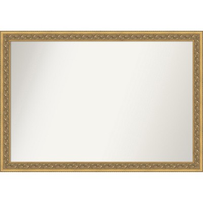 Give your bathroom the finishing touch with this 100% real wood Non-Beveled bathroom mirror. The Bethany Gold frame is an ornate, satin gold frame with a wood grain patterned outer edge and darker gold detailing.. The frame is 1.25 in. wide and stands 1 in. off the wall. It's Individually made using traditional custom framing techniques, it has the quality you expect from your local frame shop. It holds its value with premium finishing that can be appreciated up close. Because of our attention to detail and focus on artistry, architects, interior designers, and homeowners alike choose this mirror to create beautiful living spaces.