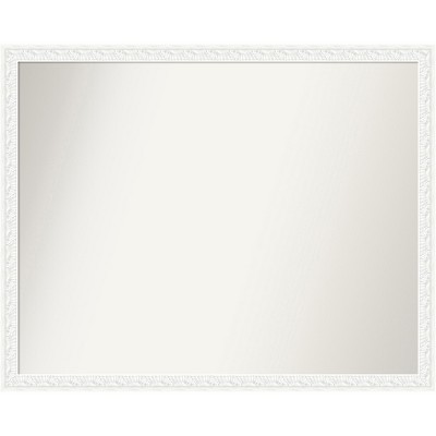 Give your bathroom the finishing touch with this 100% real wood Beveled bathroom mirror. The Bethany White frame is an ornate, matte white frame with a wood grain patterned outer edge.. The frame is 1.25 in. wide and stands 1 in. off the wall. It's Individually made using traditional custom framing techniques, it has the quality you expect from your local frame shop. It holds its value with premium finishing that can be appreciated up close. Because of our attention to detail and focus on artistry, architects, interior designers, and homeowners alike choose this mirror to create beautiful living spaces.