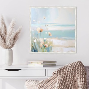 - FRAME DETAILS: The canvas is framed in the Sylvie Beaded White frame, which is a vintage float frame featuring a traditionally beaded ornate design with white coloring, a subtle woodgrain pattern and dramatic depth. The frame measures 1 in. wide and stands 2 in. off the wall. The canvas appears as if it is floating in the frame because it has a narrow gap between the edge of the canvas and the frame.