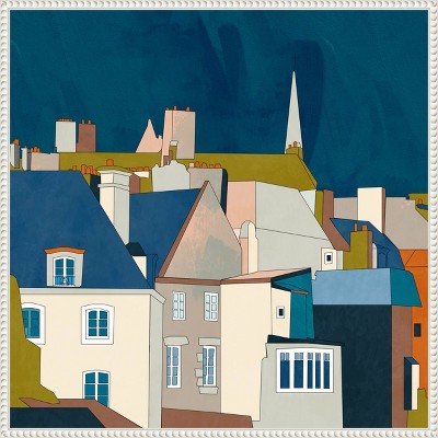 In this artwork, a navy blue bathtub is positioned near a window, offering a captivating view. The window frames a picturesque scene, inviting viewers to immerse themselves in the serene ambiance of the piece. This canvas art print was created by Elizabeth Medley and printed in Madison, WI. It is stretched across a solid surface to resist sagging. We use only premium, high-tension canvas. Our exclusive stretching techniques hide corner folds and provide a taut canvas surface. The artwork is authentically licensed. The canvas appears as if it is floating in the frame because it has a narrow gap between the edge of the canvas and the frame. Our canvas items are individually made using traditional custom framing techniques, it has the quality you would expect from your local frame shop.