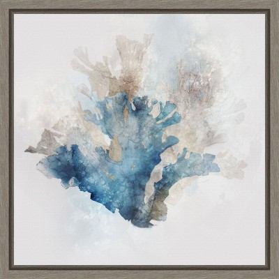 This image features a detailed scientific illustration of two types of sea plants, labeled as Coralline (1) and Dulce (2). The artwork is marked Plate XLVI at the top and depicts the plants in a monochromatic blue tone against a light background. The upper portion shows a branching structure with bead-like nodes, while the lower part displays broad, leaf-like structures. The overall style is reminiscent of vintage botanical prints. This framed art print was created by Deborah Revell and printed by Amanti Art in Madison WI. The print is giclee printed using fade-resistant inks for picture-perfect detail and incredible depth of color and finished with a 100% real wood frame. Individually made using traditional custom framing techniques, it has the quality you would expect from your local frame shop.