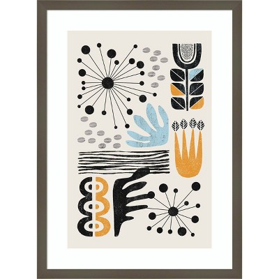 The artwork features a blend of organic and geometric shapes in various shades of turquoise and green. The color palette is soothing, with contrasting hints of orange. The composition offers a minimalistic yet textured feel, drawing viewers into its harmonious design. This framed art print was created by Lindsey Newman and printed by Amanti Art in Madison WI. The print is giclee printed using fade-resistant inks for picture-perfect detail and incredible depth of color and finished with a 100% real wood frame. Individually made using traditional custom framing techniques, it has the quality you would expect from your local frame shop.