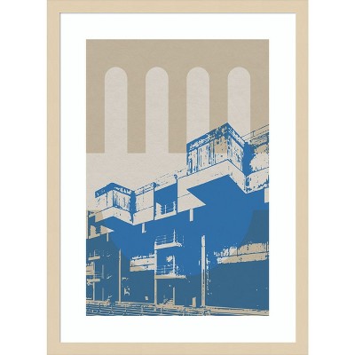 This artwork features a blend of geometric shapes with a prominent large circle at the center, surrounded by smaller circles. The composition is divided into two main color blocks a dark blue bottom section and a lighter upper section with textured shades of beige and gray. The interplay of color and shape creates a sense of balance and modernity. This framed art print was created by Cartissi and printed by Amanti Art in Madison WI. The print is giclee printed using fade-resistant inks for picture-perfect detail and incredible depth of color and finished with a 100% real wood frame. Individually made using traditional custom framing techniques, it has the quality you would expect from your local frame shop.