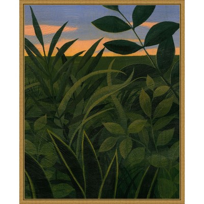 The artwork features bold, overlapping shapes in earthy tones with a prominent dark green leaf motif. It combines organic elements with a modern, abstract style. The interplay of colors creates a harmonious and visually striking composition. This canvas art print was created by Arctic Frame and printed in Waunakee, WI. It is stretched across a solid surface to resist sagging. We use only premium, high-tension canvas. Our exclusive stretching techniques hide corner folds and provide a taut canvas surface. The artwork is authentically licensed. The canvas appears as if it is floating in the frame because it has a narrow gap between the edge of the canvas and the frame. Our canvas items are individually made using traditional custom framing techniques, it has the quality you would expect from your local frame shop.