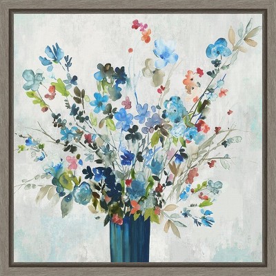 This artwork showcases a vibrant arrangement of flowers, with intricate designs and a gem stone color palette. The floral elements are beautifully depicted, creating a visually appealing composition that captures the essence of nature\'s beauty. This canvas art print was created by Pernille Folcarelli and printed in Madison, WI. It is stretched across a solid surface to resist sagging. We use only premium, high-tension canvas. Our exclusive stretching techniques hide corner folds and provide a taut canvas surface. The artwork is authentically licensed. The canvas appears as if it is floating in the frame because it has a narrow gap between the edge of the canvas and the frame. Our canvas items are individually made using traditional custom framing techniques, it has the quality you would expect from your local frame shop.