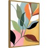 The artwork features an abstract representation of botanical elements with overlapping leaves in various colors. The leaves are arranged against a pastel background, creating a modern and minimalist design. The use of soft and vibrant colors adds a dynamic and harmonious feel to the piece. This canvas art print was created by PI Studio and printed in Waunakee, WI. It is stretched across a solid surface to resist sagging. We use only premium, high-tension canvas. Our exclusive stretching techniques hide corner folds and provide a taut canvas surface. The artwork is authentically licensed. The canvas appears as if it is floating in the frame because it has a narrow gap between the edge of the canvas and the frame. Our canvas items are individually made using traditional custom framing techniques, it has the quality you would expect from your local frame shop.